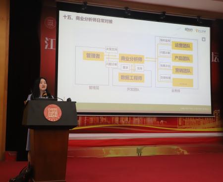 3月21日下午,统计学院在国际学术报告厅举办职业规划与形势分析讲座,邀请新东方前途出国就业力项目推广管理中心线上产品主管袁小清主讲,围绕“职业规划与就业形势分析”主题,从“考研、求职数据分享”“HR在招聘中是如何选人的”“怎么定义好工作的标准”“找到自己心仪工作方向的底层逻辑”“大学期间需要做哪些准备工作”“如何打造国际化竞争力”等几方面,帮助同学们了解当前国内考研和求职的大环境,提早做好应届毕业生的规划,找准自身的定位,全面提升大学生的核心竞争力,培养国际视野。统计学院2018级学生300余人现场聆听了讲座。