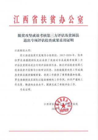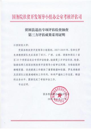 在第三方核查的过程中,罗良清教授为首席专家的团队以贫困退出、扶贫效率评价研究为主线,发表了《中国贫困动态变化分解:1991—2015年》《就业扶贫、增收效应与异质性分析》《农民多维分化背景下的合作社建设与乡村振兴》等学术论文,主持了《贫困退出考核评估的统计测度研究》《后扶贫时代中国城乡相对贫困统计测度与治理机制研究》两项国家社科基金重大项目,主持完成各类相关课题40余项,