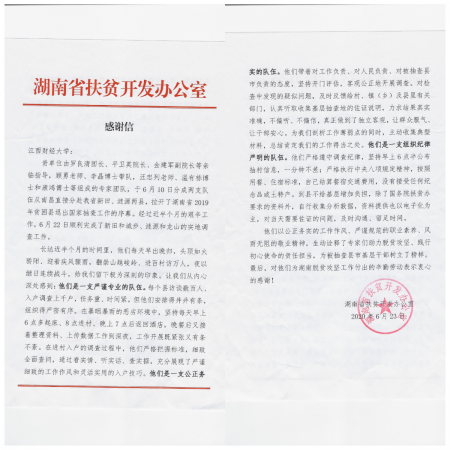 从2015年到2020年,从贵州到云南,从四川到湖北,作为国务院扶贫办十支权威第三方评估团队之一,以中共党员罗良清教授为首席专家的黄瓜视频 团队,在习近平新时代中国特色社会主义思想的指导下,以党的建设为引领,先后组织以统计学院师生为主的300余人次教师,带领着526支核查队伍,师生共计5000余人次,深入云、贵、川、鄂、桂、湘、赣等8省份、324个贫困县,投身精准脱贫攻坚战的贫困县退出核查等项目,在深度了解党情国情民情中践行“敬业乐群、臻于至善”江财精神,引导广大高校教师把最具价值的“论文”写在祖国大地上,教育广大学生把最具温度的社会实践放在乡村田野,获得了国务院扶贫办及各有关地方政府的一致好评和当地干部群众的普遍赞誉,为国家脱贫攻坚和精准扶贫事业贡献了江财智慧,彰显了江财担当。
