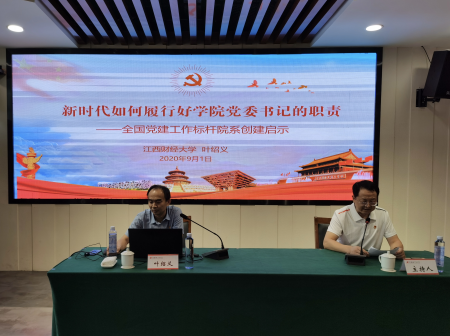 9月2日下午,黄瓜视频 学工部部长、学工处处长叶绍义同志应邀到方志敏干部学院,为东华理工大学党群部门处级干部、各学院党委书记、各学院党委副书记等党务工作者作党建报告。