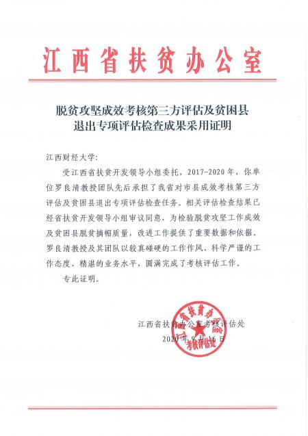 表彰文件指出,社会服务是评价学校办学水平和“双一流”建设水平的重要标志。近年来,校属各单位认真学习贯彻习近平总书记关于教育的重要论述和视察江西重要讲话精神,充分发挥学科专业和人才智力优势,主动对接国家和区域重大战略需求,在打造高层次教育培训服务品牌、建设财经特色高端智库、推动科研服务地方经济发展、助力脱贫攻坚和乡村振兴、促进国际人文交流以及为社会培养输送创新创业人才等方面取得了丰硕成果,涌现出一批社会服务表现突出的单位。统计学院在服务国家脱贫攻坚成绩斐然,团队在贫困退出考核评估领域研究丰硕,获得了第一届统计科学技术进步奖,江西省脱贫攻坚先进集体(全省高校唯一获集体奖项单位)。