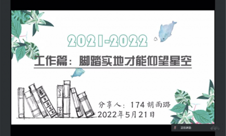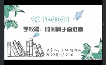 5月21日下午,统计学院于线上举办第二期优秀毕业生分享会活动。本次分享会邀请到了2021届优秀毕业生胡雨璐为同学们分享她四年来在学习与工作中的经验心得。