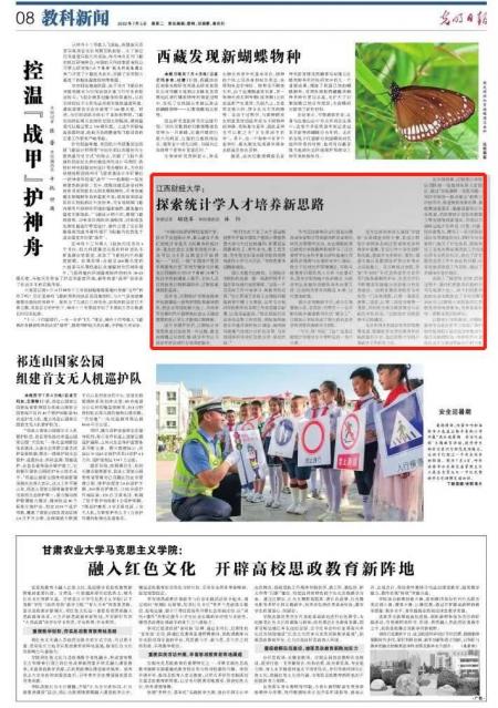 7月5日,《光明日报》以《探索统计学人才培养新思路》为题,对我校统计学院的人才培养新思路进行了专题报道。