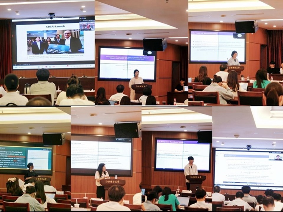 In the second half of the presentations, Mengjie Zhang, Juyeon Oh, Somi Cha, Zhuolin Liu, Sora Kang, Seunghyeon Kim, and Peiwen Xiao gave seven presentations on the topics of Data Science and Artificial Intelligence Research and Application in VUW Assessing the impact of lifestyle and mental health on suicide rate through component regression analysis, Clustering of high-dimensional categorical data, Joint temporal convolutional network and BiLSTM Neural Networks for Interpretability of Heartbeat Classification Predicting Yield of Oriental Melon Using LSTM and ARIMA Algorithms Fast Laplace Variational Inference Method for Bayesian Envelope Modeling Distributed Inference for Quantile Regression Models Based on Stochastic Weighted Self-Help Methods.