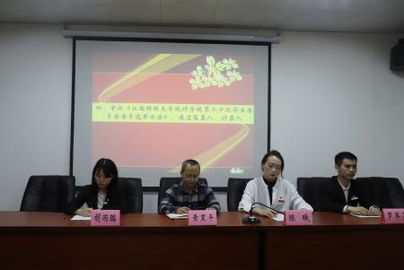 9月27日下午,统计学院于蛟桥园北区综合楼313会议室召开学院第二十次学生代表大会,来自全院各班学生代表、学生会干部共70人参与此次大会,统计学院党委副书记黄黑平、团委副书记陈曦出席此次大会。