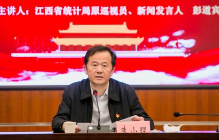 3月31日,统计学院党史学习教育专题讲座第一讲开讲,校党委副书记朱小理出席并致辞,江西省统计局原巡视员、新闻发言人彭道宾应邀主讲。讲座由统计学院首席教授罗良清主持,统计学院师生党员100余人现场聆听了讲座。