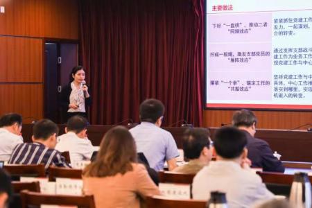 统计学院副院长、教工第一党支部书记郭露简要介绍了党支部概况,并从支部在党员发展教育管理、三化建设及党史教育等方面的建设思路、主要做法、工作成效与经验启示进行了详细介绍。