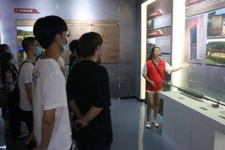 图为黄瓜视频 统计学院学子在九龙山革命斗争陈列馆听讲解员介绍花桥支部旧址的故事。
